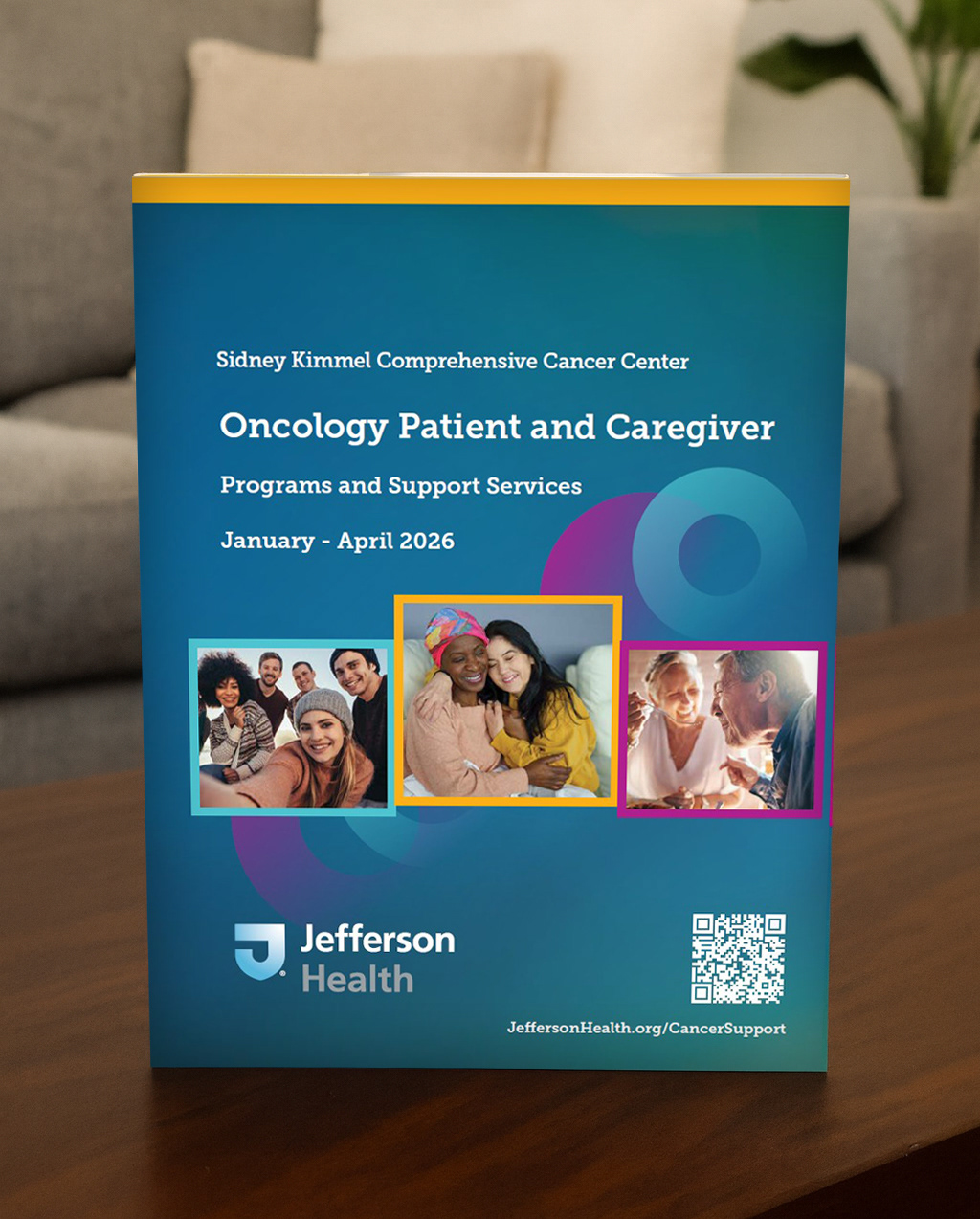 The layout blends clarity and warmth to support oncology patients and caregivers as they navigate available resources. The digital edition features fully interactive elements—clickable links and QR codes—allowing users to easily register for programs and events directly from the catalog. The result is an accessible, user-friendly piece that enhances engagement and streamlines the patient experience.
