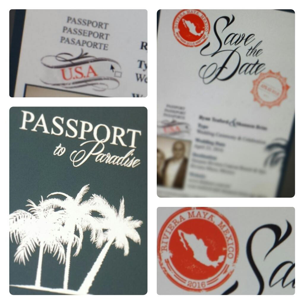 "Save the Date" Passport book for a destination wedding. Clients info blurred for privacy respect.